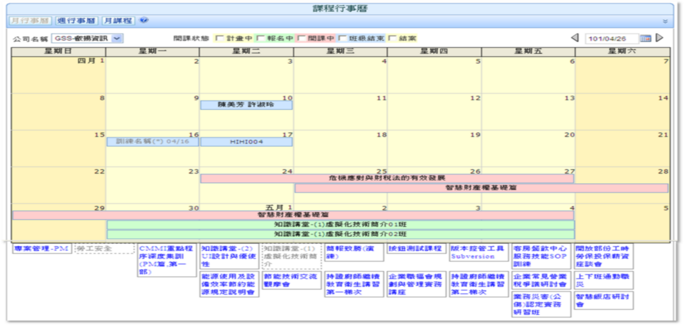 - 線上取得開課資訊、報名、查詢個人訓練計畫及受訓記錄